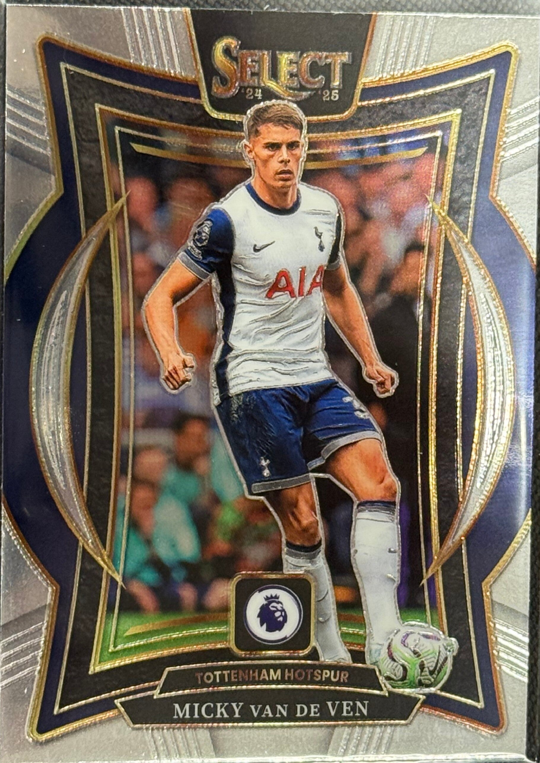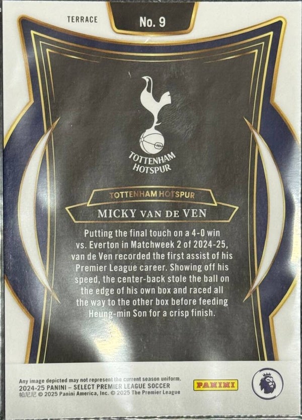 The Micky Van De Ven No.9 Panini Select card features the Tottenham Hotspur defender in high-quality detail, perfect for collectors and football enthusiasts. An excellent addition to any Panini Select collection, showcasing Van De Ven's role in the Premier League.